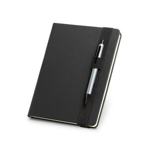Bloco de notas A5 em PU com folhas pautadas, feitas de material certificado FSC™ e outros materiais controlados