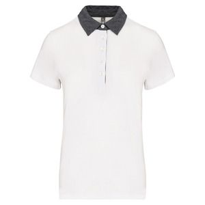 Kariban K261 - Branco/ Cinza Escuro Mescla - Polo de senhora jersey bicolor