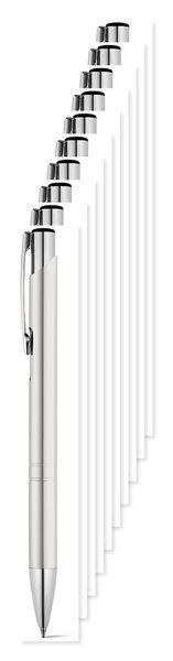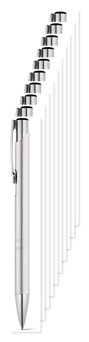 Pack de 10 Egotier 91311 - Cinzento claro - Esferográfica em alumínio com clipe