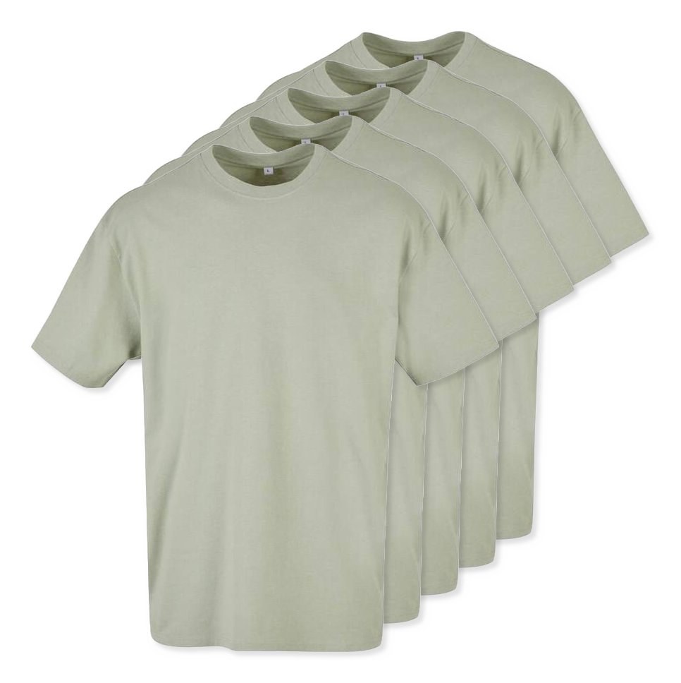 Pack de 5 Build Your Brand BY102 - Salvia Suave - Camiseta Oversized Conforto e Estilo Urbano