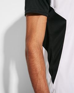 T-shirt técnica de manga reglan.1 – Gola redonda com tapa costuras no mesmo tom.2 – Mangas e encaixes laterais em contraste.