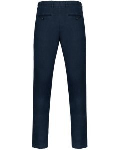 Cintura com presilhas e acabamento interior com contraste de cor azul marinho.