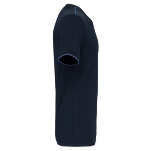 Acabamento da manga em malha rib com detalhe em contraste.